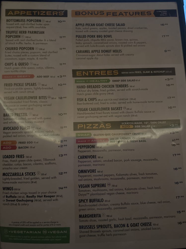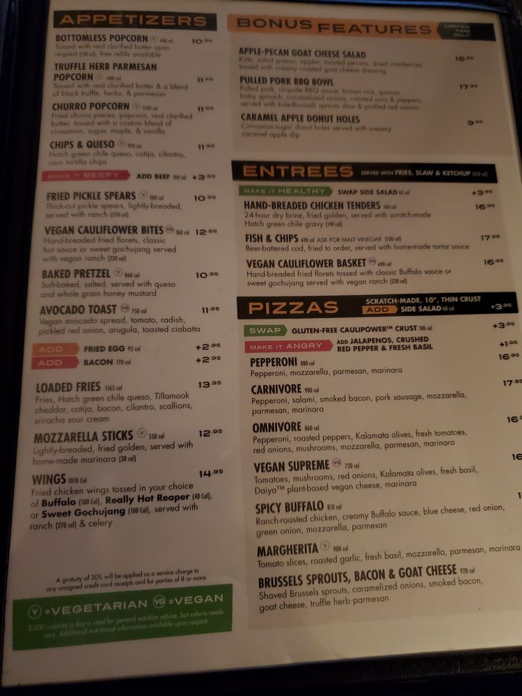 Introducing the menu at Alamo Drafthouse Cinema New Mission, a unique cinema-dinner theater-bar in San Francisco. With a vintage charm reminiscent of old Hollywood movie houses, the theater offers a full bar, waiter service, and a diverse menu. Customers rave about the attentive staff, quick service, and delicious food options including loaded fries, chicken sandwiches, and vegan-friendly pretzels. The theater provides a one-of-a-kind movie experience with full-service dining at your seat, extensive drink options, and smaller, intimate screening rooms. While the seating may be a bit tight for some, the overall ambiance and quality of food make it a must-visit for movie enthusiasts looking for a memorable night out. Alamo Drafthouse Cinema New Mission combines nostalgia, great food, and top-notch service for a truly unique entertainment experience.