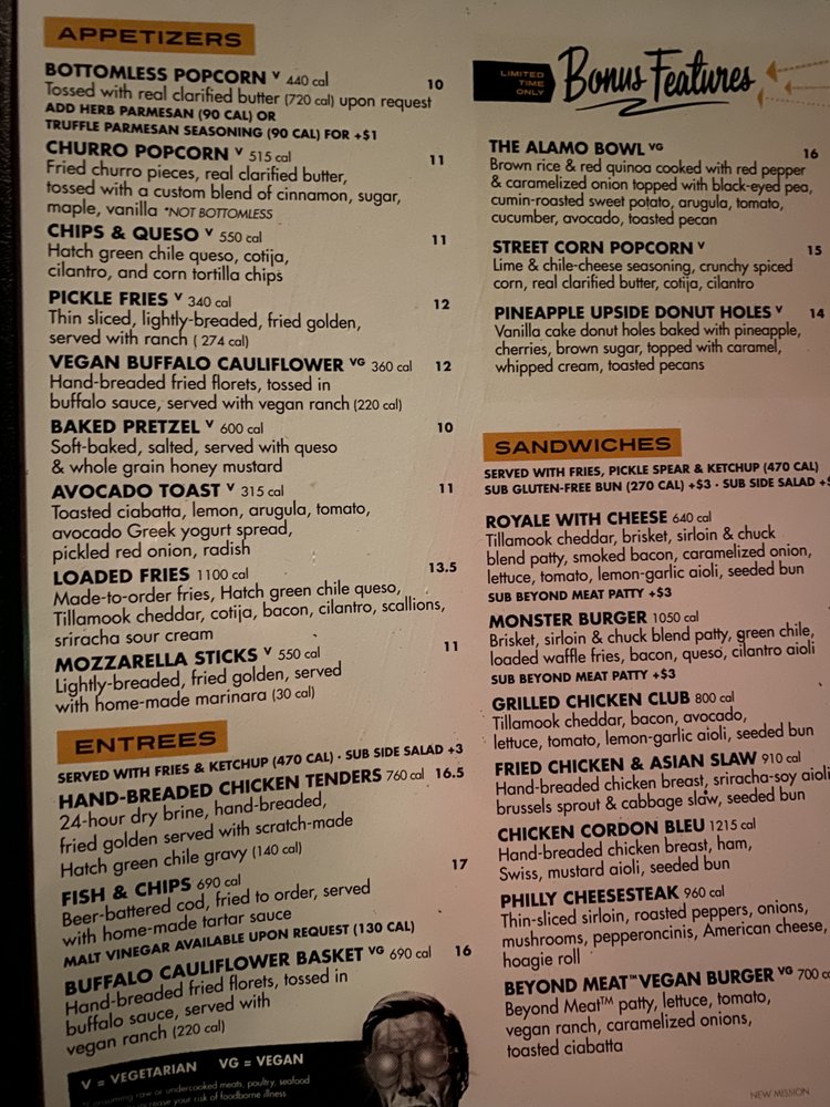 Alamo Drafthouse Cinema New Mission Menu (Update 2025)